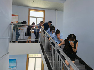 理論培訓(xùn)后進(jìn)行火災(zāi)疏散演練,參加培訓(xùn)人員在楊教官的指引下,用濕毛巾捂住口鼻,彎腰貼墻迅速有序通過(guò)安全出口,奔向辦公樓前空地集合。